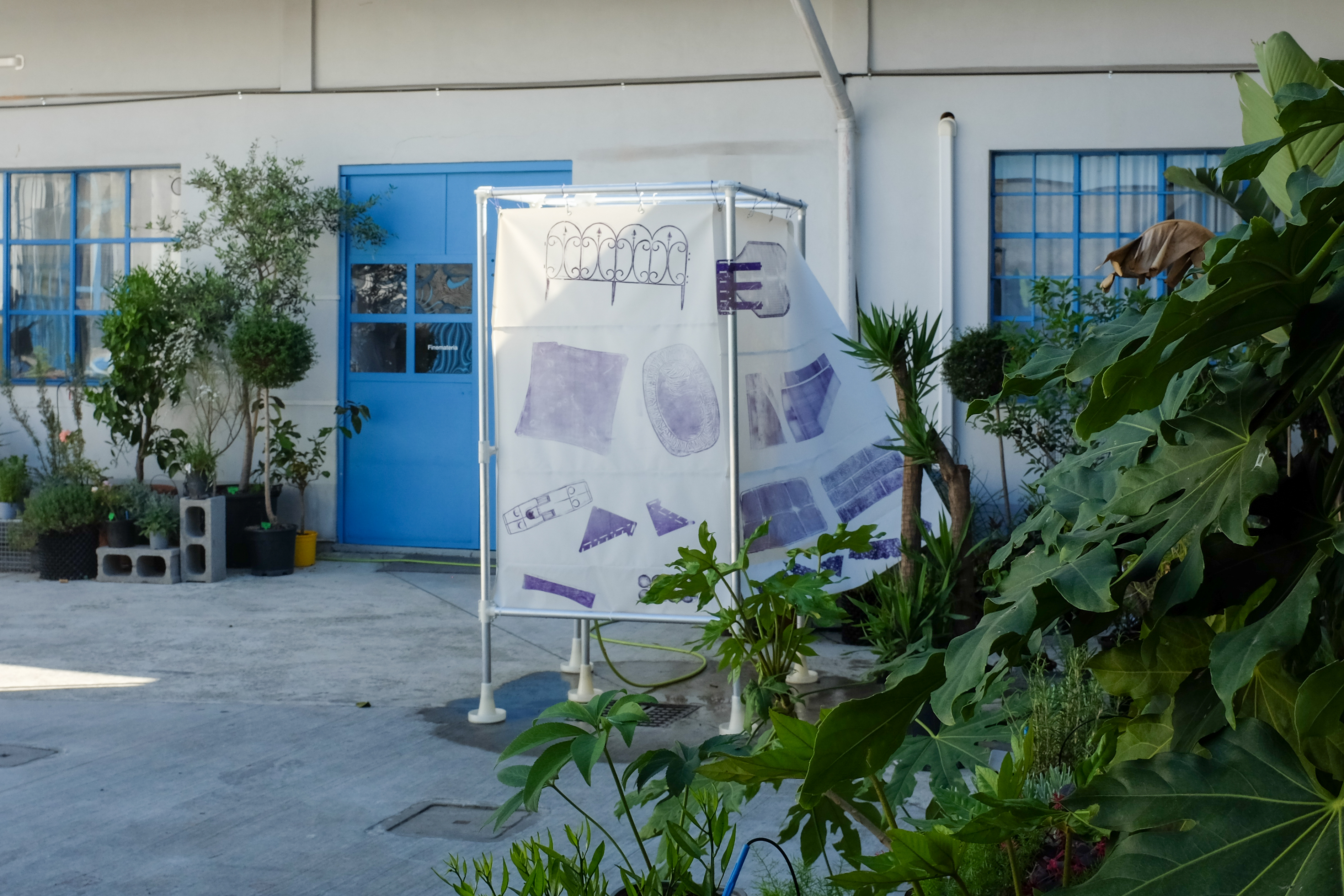 For Milan Design Week 2024 whywhynot continued working on the project ‘Pressing Matters’, this time finding the form of a functional outdoor shower for the exhibition ‘The Dutch Embassy of Living’ curated by Cecilia Casabona at Dopo?. Along with other installations and objects the shower addressed the housing crisis and dwelling displacement happening in Milan and throughout Europe. This culminated in an intervention using experimental printing techniques on recovered objects found throughout the city of Rotterdam.
